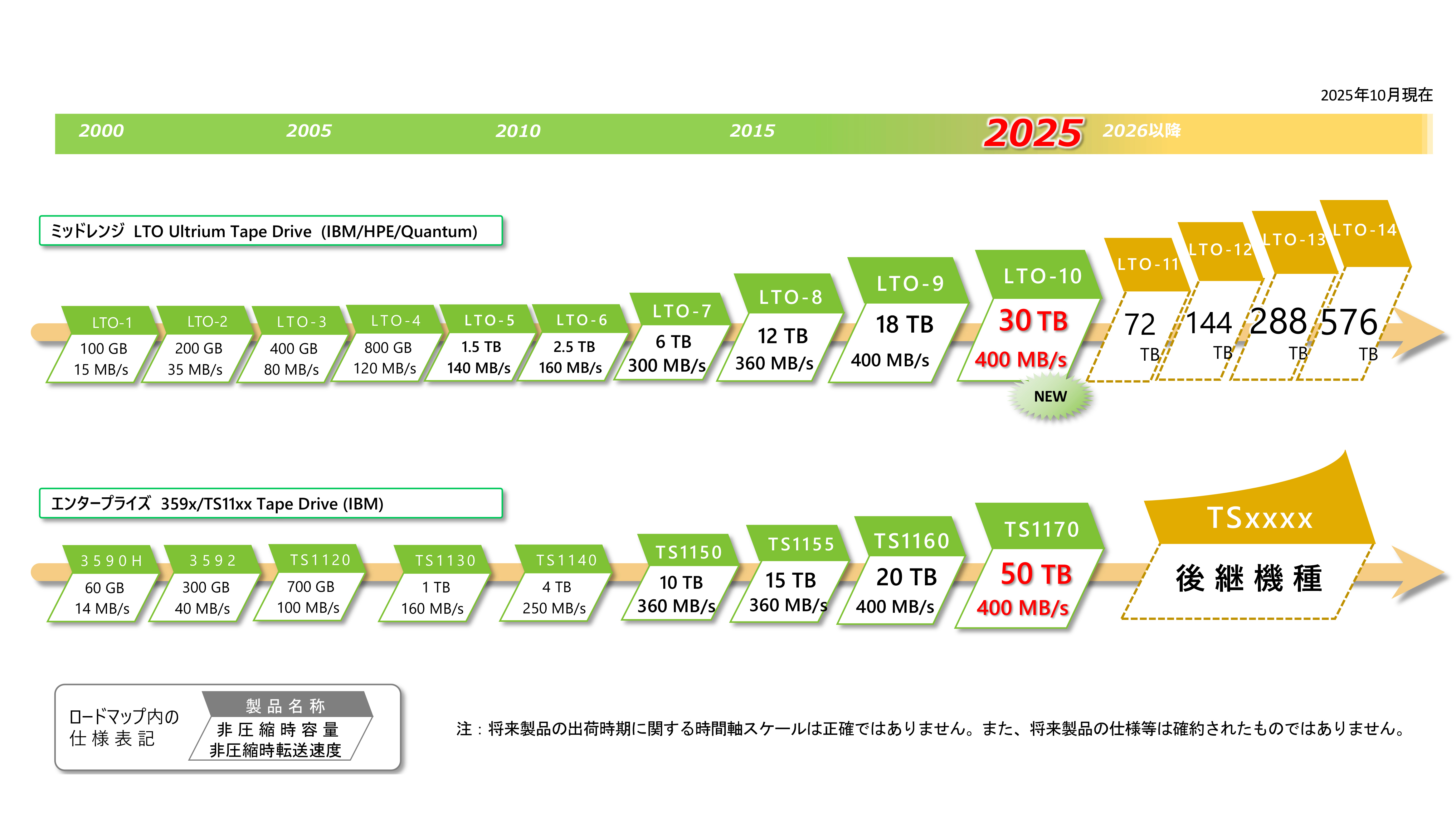【ミッドレンジ&エンタープライズクラスのテープ規格ロードマップ】