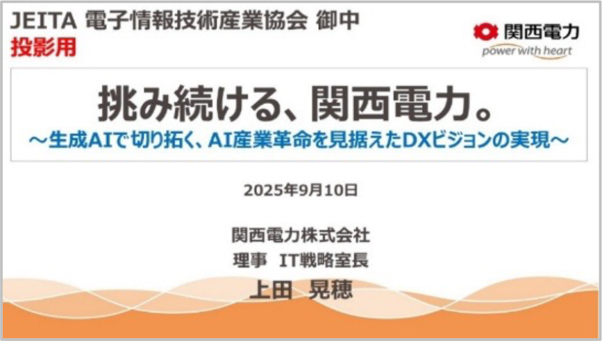 本講演では、「挑み続ける、関西電力。~生成AIで切り拓く、AI産業革命を見据えたDXビジョンの実現~」と題して、2030年に到来するAI産業革命を見据え、同社が「AIファースト企業」となることを目指し、DX戦略を再構築した経緯が語られました。これは、従来の「日本の伝統的企業JTC(Japanese