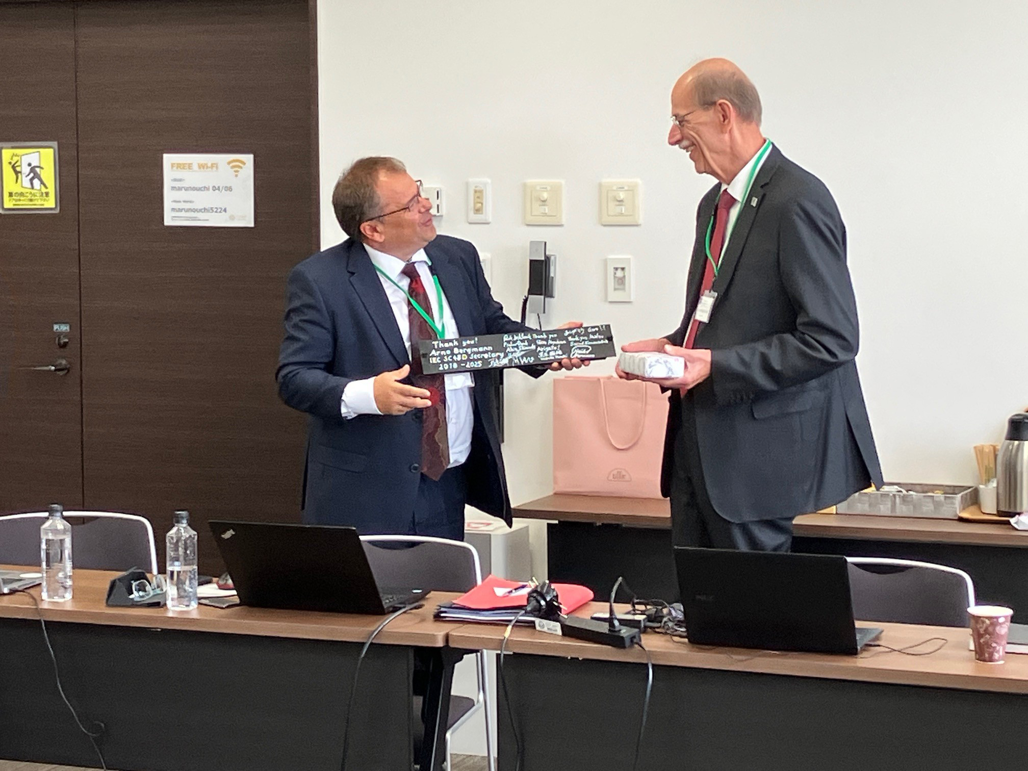 また、2025年12月に退任予定の Secretary(Arno Bergmann 氏)に対し、感謝と慰労の意を込めて、東京会議参加者より記念品を贈呈しました。