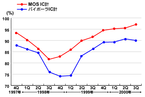 MOS IC生産稼動率(生産能力計)