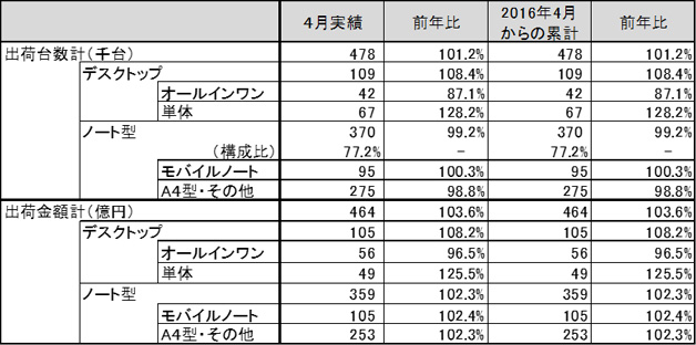 パーソナルコンピュータ国内出荷 4月の概況 |