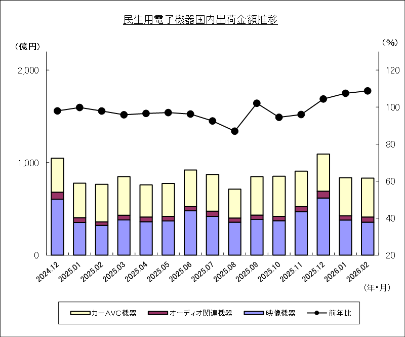> 統計資料 > 民生用電子機器国内出荷統計 > 2026年